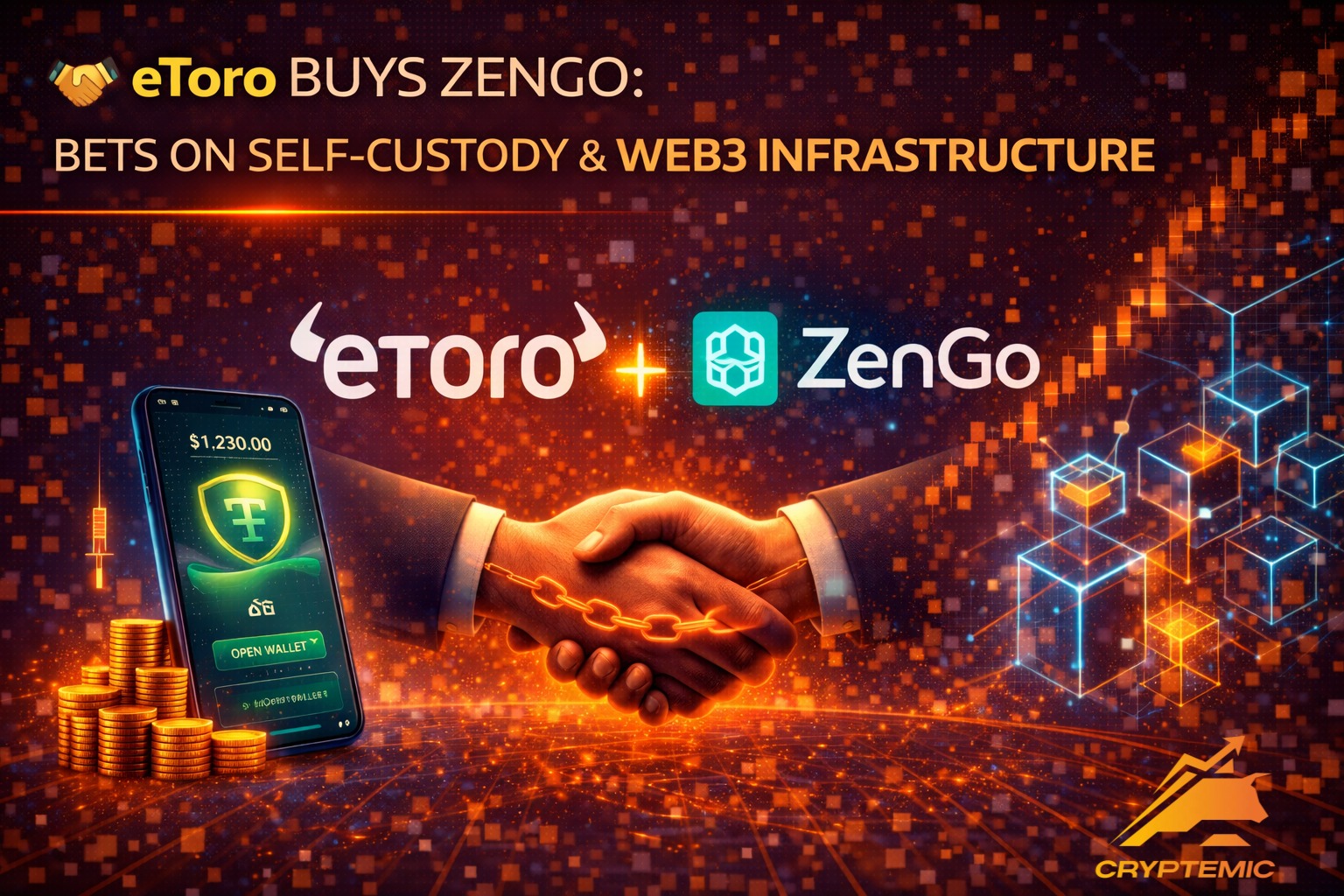Платформа eToro объявила о соглашении по покупке криптокошелька Zengo. Сделка оценивается примерно в $70 млн (по данным СМИ) и направлена на усиление позиций компании в Web3 и инфраструктуре цифровых активов. Ключевая цель — выйти за рамки обычного трейдинга. eToro планирует…
