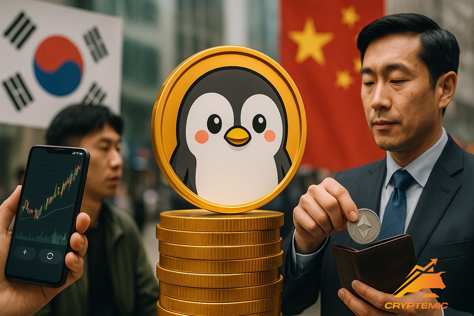 Южнокорейские инвесторы проявляют огромный интерес к токену PENGU, о чем свидетельствуют данные с платформы анализа блокчейна LookOnChain. Всего за последнюю неделю три кошелька, связанные с криптовалютными биржами Bithumb и Upbit, накопили 945 миллионов PENGU на сумму около $32 млн, а общий баланс этих кошельков составил 2.92 миллиарда токенов, что эквивалентно $96.73 млн и составляет 3.8% от общего объема обращения.