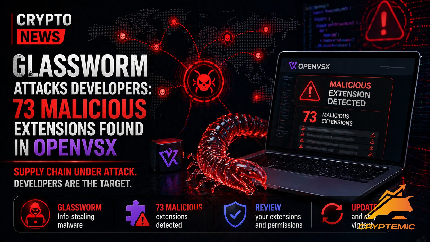 - ⚠️ GlassWorm атакует разработчиков: 73 вредоносных расширения в OpenVSX