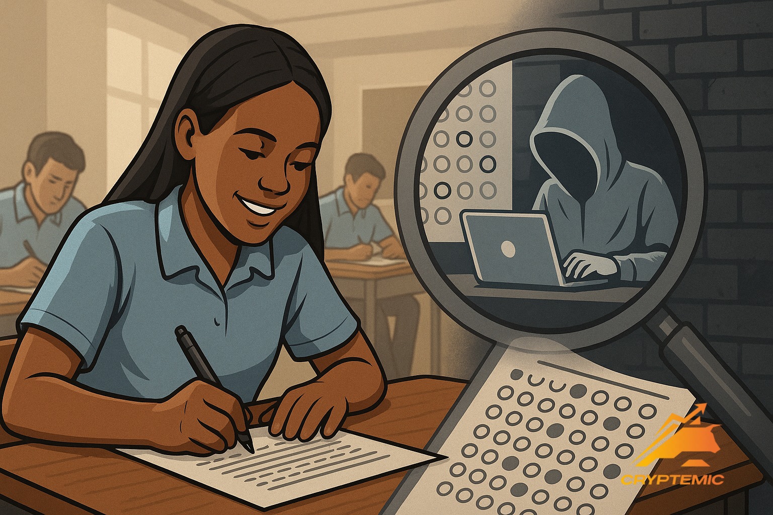 По его словам, традиционные схемы списывания и подмены экзаменационных материалов уступили место более сложным видам обмана с использованием технологий. Среди подтверждённых случаев — биометрическое искажение данных, мошенничество с личностью кандидатов, а также пособничество со стороны аккредитованных CBT-центров.