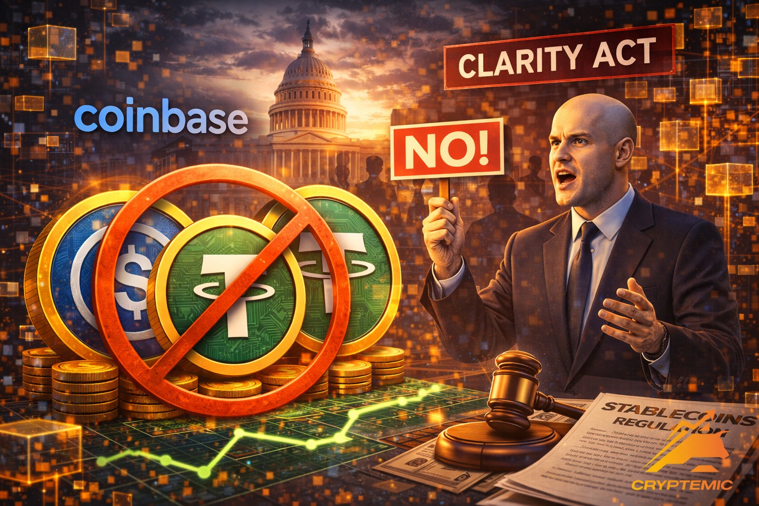 Крупнейшая американская криптобиржа Coinbase предупредила законодателей США, что может отозвать поддержку законопроекта CLARITY Act, если в него будут включены жёсткие ограничения на доходность по стейблкоинам. Об этом сообщает Bloomberg, ссылаясь на источники, знакомые с позицией компании.