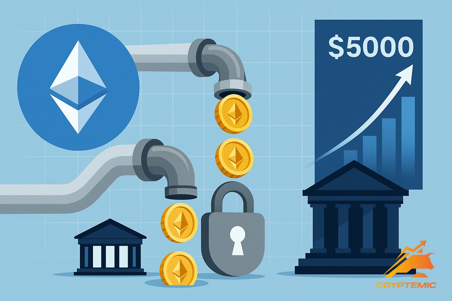 Институциональные притоки через ETF усиливают структурный спрос: растущие активы под управлением уменьшают доступный объём ETH на спотовых площадках. Эффект усиливается механикой стейкинга — монеты, задействованные в валидаторах, исключаются из свободного оборота, что повышает чувствительность цены к дополнительным заявкам на покупку.