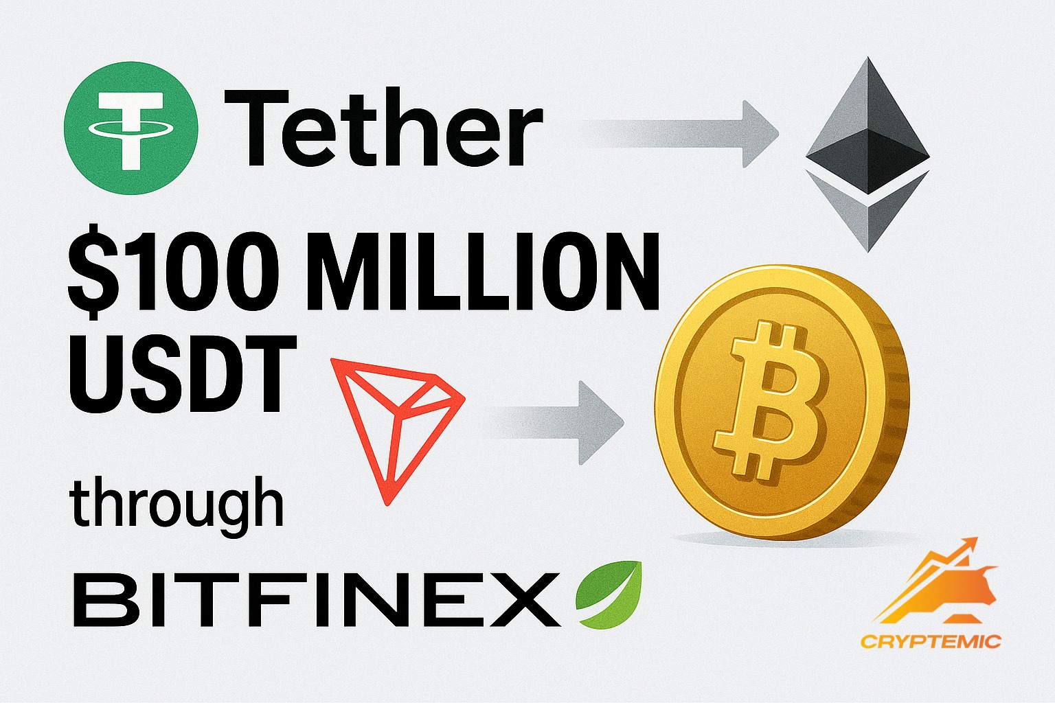 Tether провёл очередной крупный цепочный своп: 100 млн USDT были отправлены с Bitfinex обратно в казначейство Tether на блокчейне Tron и сразу «сожжены», а равноценное количество токенов выпущено на Ethereum. Эта операция помогает перераспределить ликвидность между сетями в ответ на меняющийся спрос.